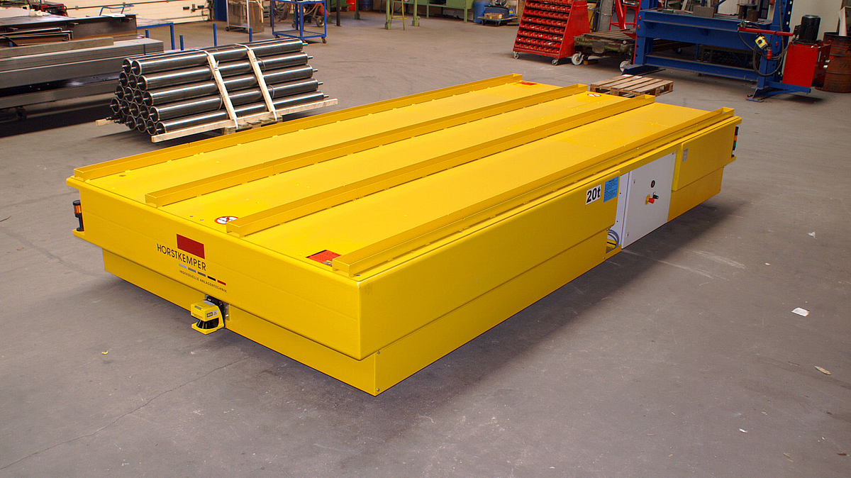 We are specialists for ground moving vehicles. Silently, quietly and as if guided by magic, these conveyors move through your production halls. Drive and power transmission systems laid into the floor guide our conveyor vehicles from one point to the next. Either highly automated or by mechanical means. We move goods weighing between 50 to 50,000 kg into storage, to dispatch or from production step to production step. Vehicles are tailored to your needs and feature the exact superstructures for your products.