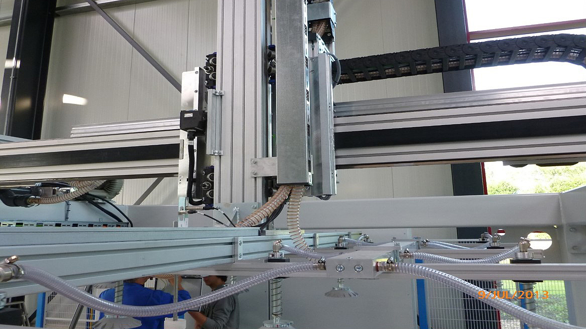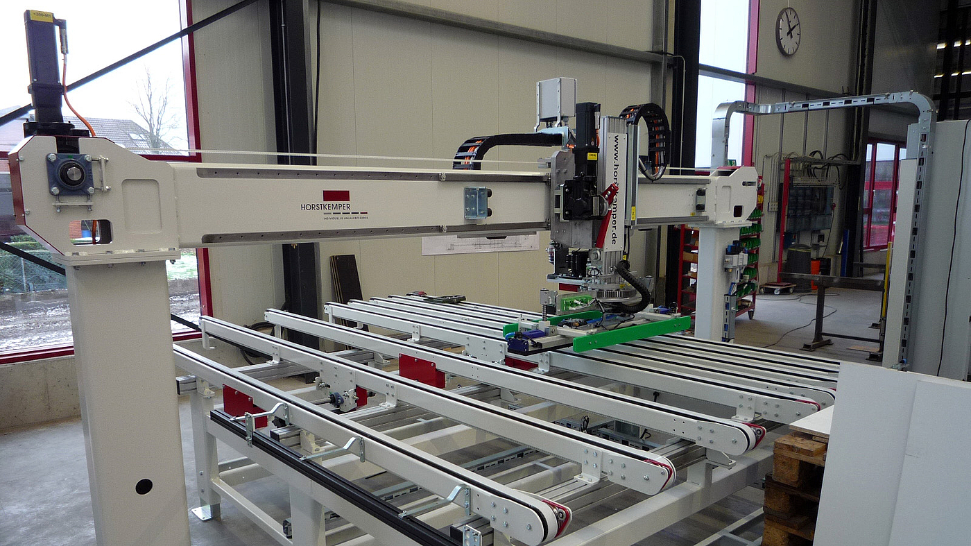Destacking feeders separate blanks within the destacker. They impress with their modular assemblies and clearly structured design. The level of freedom and therefore the number of axes, up to 5, as well as respective travel paths are individually configurable. HORSTKEMPER destacking feeders are available in different system sizes with a vertical load capacity of up to 400 kg. Generally, destackers are standardly equipped with a destacking feeder, although a second feeder is regularly used, especially in case of high-performance destackers with a destacking capacity of up to 30 strokes/min. To achieve required output, both destacking feeders are then parallelly operated in an alternating destacking mode.