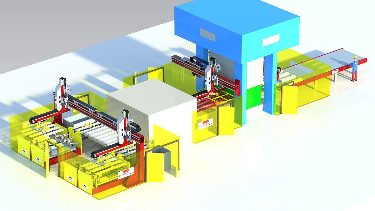 In order to permit forming of these specific materials, it is necessary to heat blank cuts to approx. 950°C before such are fed into the press. Since the 1990s HORSTKEMPER, as a competent partner, has been tasked in the automation process for handling hot blanks.