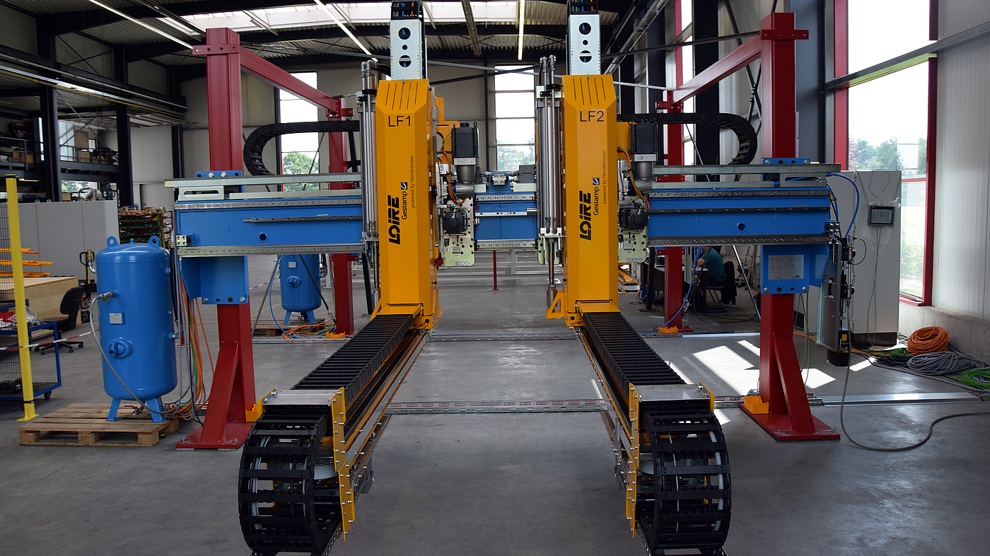 HORSTKEMPER also supplies highly dynamic press loading- and unloading systems from modular feeder and transfer systems. By using transfer systems and systematic synchronization between press and automation, it is possible to optimally realize the shortest changeover times for parts within the tool. In addition to handling hot blanks, destackers and automatic stacking systems for the finished parts complete the product range at the End of Line of a press hardening line.