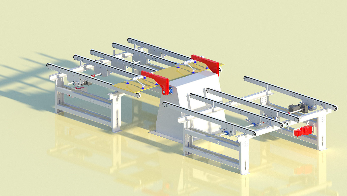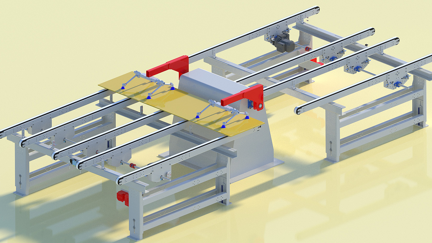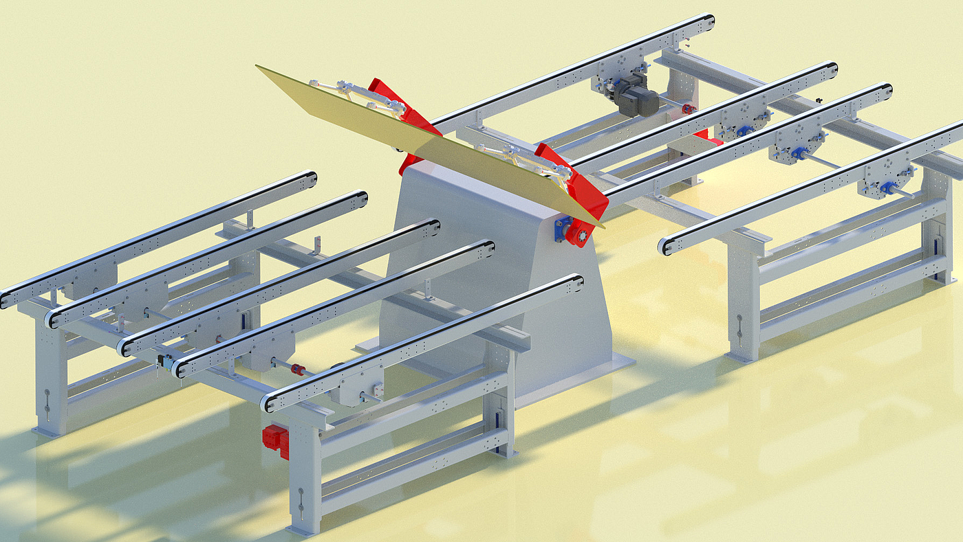 Vacuum turners are used when flat, vacuum-tight loads of a wide variety of materials, such as sheet metal, glass panes, plastic and wooden sheets or blanks, have to be turned by 180°. Vacuum turners are particularly suitable for delicate surfaces because such materials are picked up with individual suction cups. In narrow areas, vacuum turners may also be used as a combination for angular transfer.