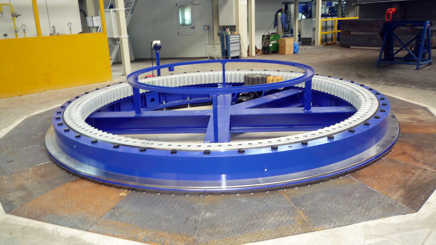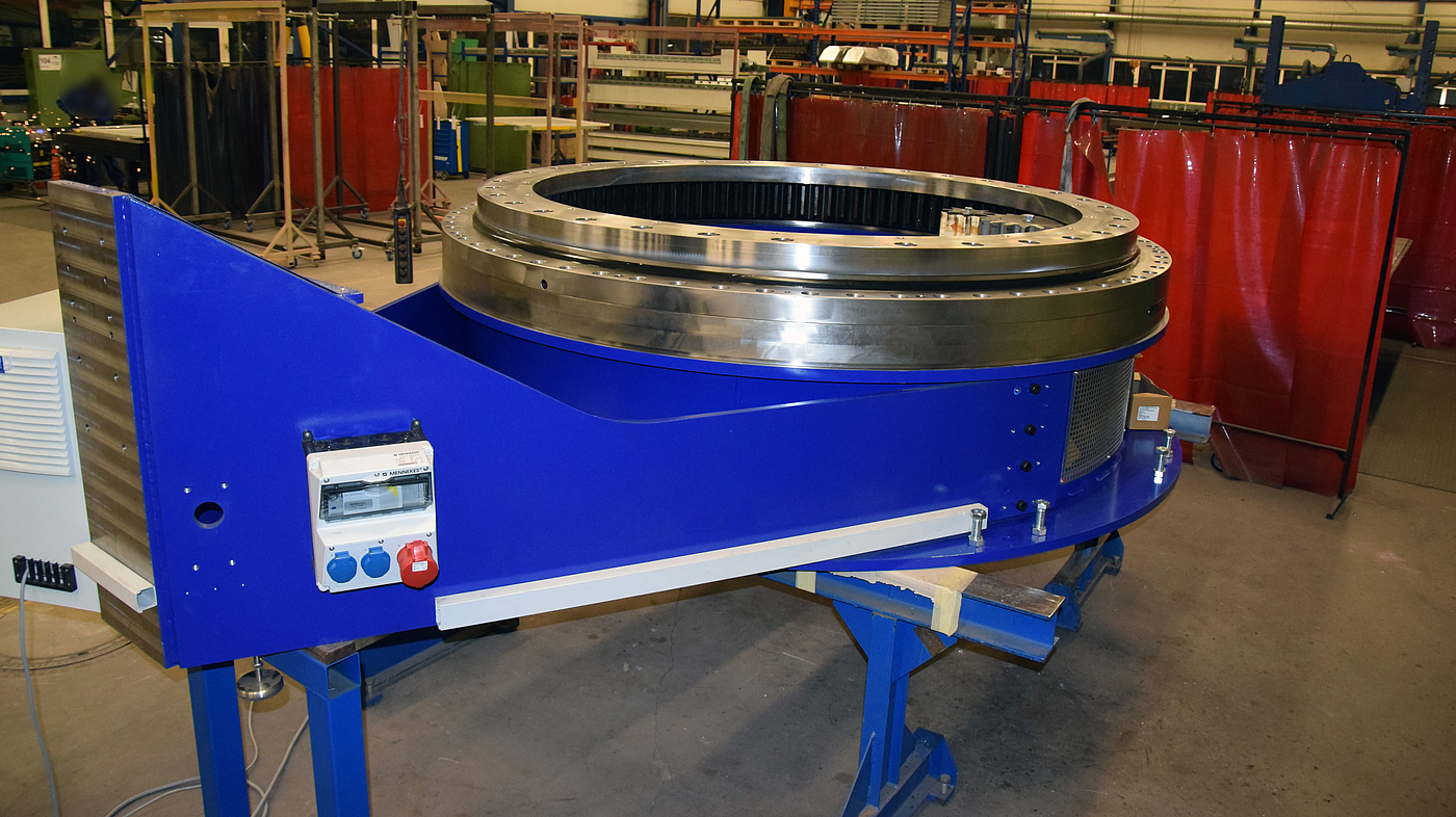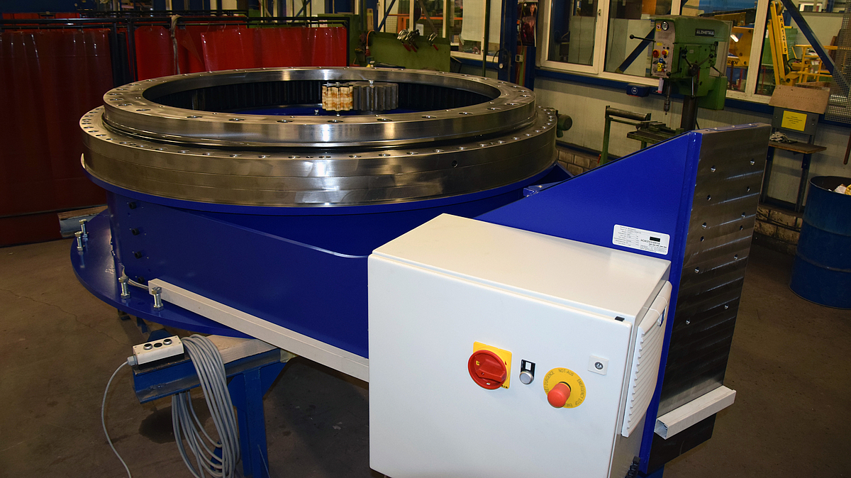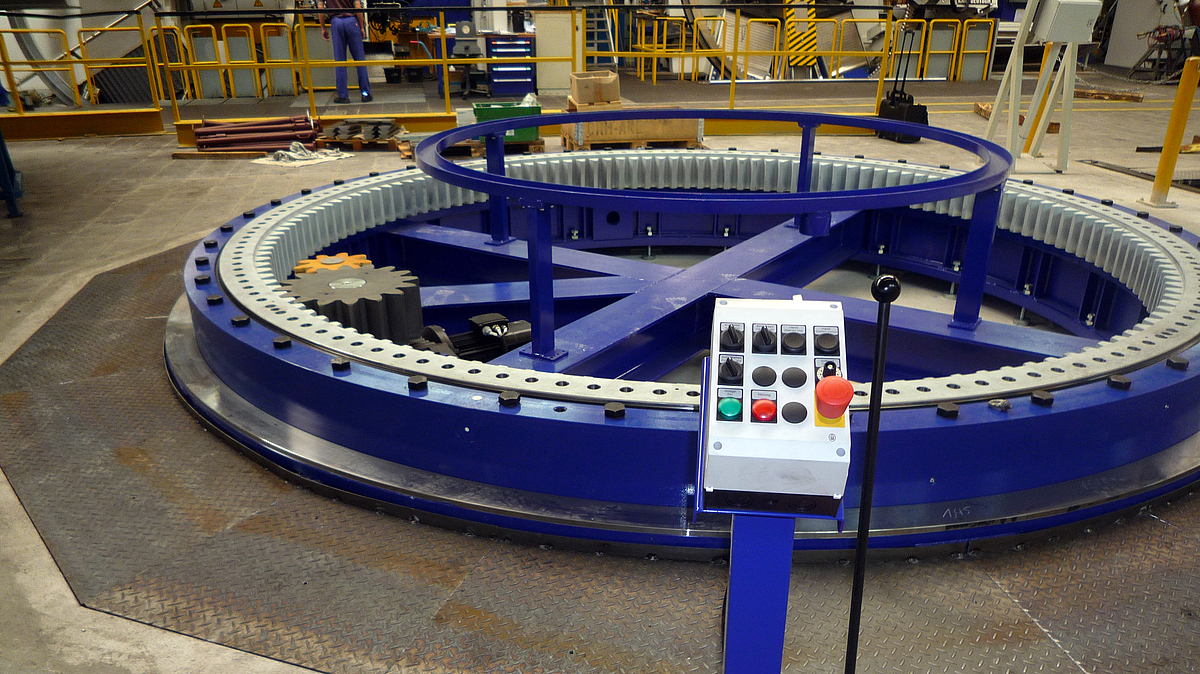 At the end of a cyclic assembly line, a change of direction is often required. We realise this with typical crossing elements matching our rail system and at the same time equipping our crawler tracks with a cruise carriage. The change of direction within the carriage can be realised with a second carriage, which is arranged at a 90° angle and is moved separately in engagement. In addition, changes of direction can be implemented with proven turning stations. At the same time, these are installed in the foundation at ground level and can be passed by the usual industrial trucks without being an obstacle.