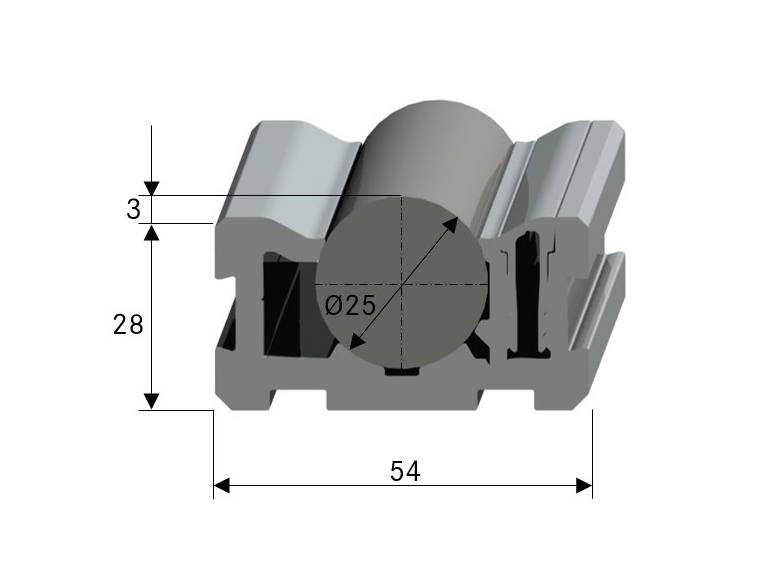 Due to its novel profile geometry, the waverail® features a significantly improved clamping system for fixing the shaft in the extruded aluminium profile.