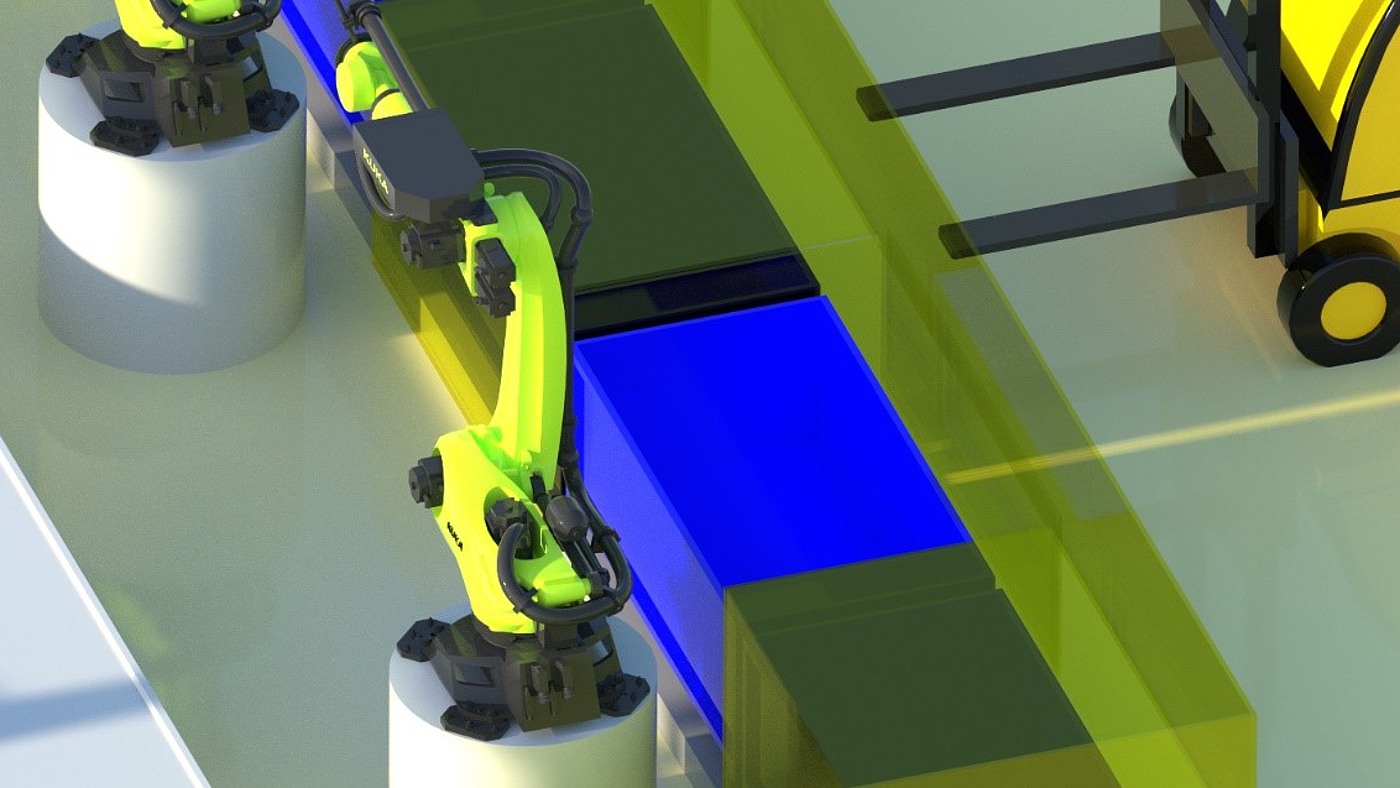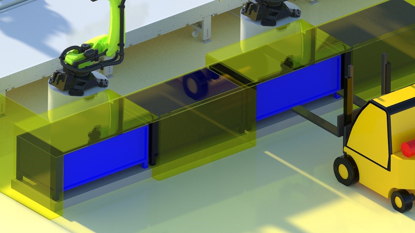 Container stations are situated at the end of an End-of-Line system. Moulded components are placed in containers, mesh boxes or stacking racks and stacked to be transported to further processing such as body-in-white-lines. Especially for fully automated End-of-Line systems, our container stations are equipped with pre-centring devices for repeatable and accurate container insertion. In addition, our systems are equipped with sophisticated protection concepts to enable automated stacking and container exchange within the container station.