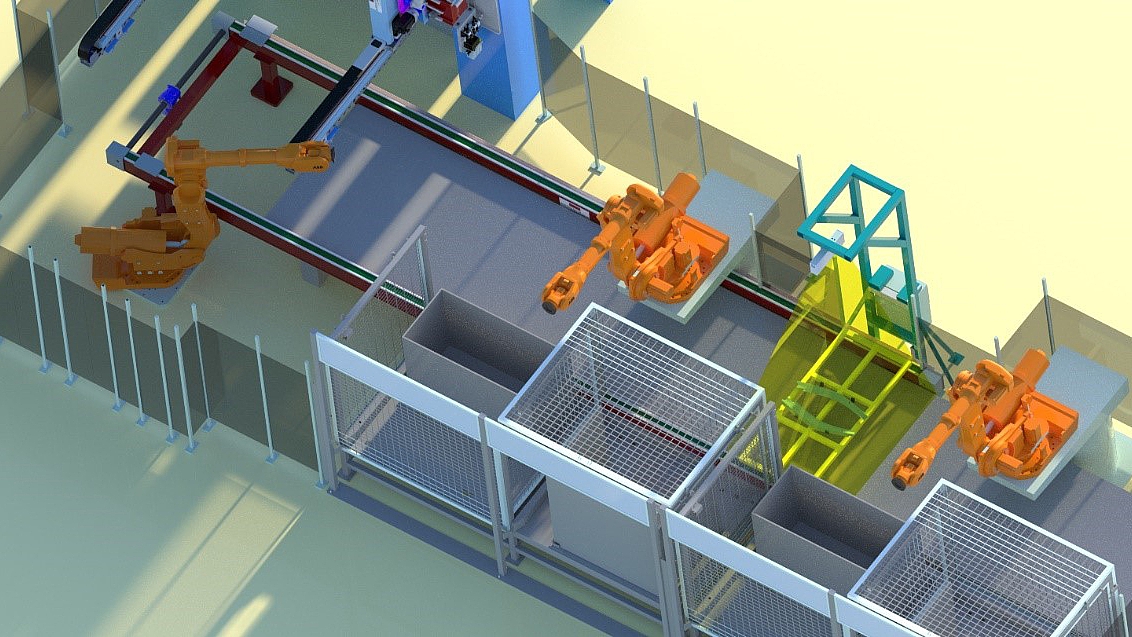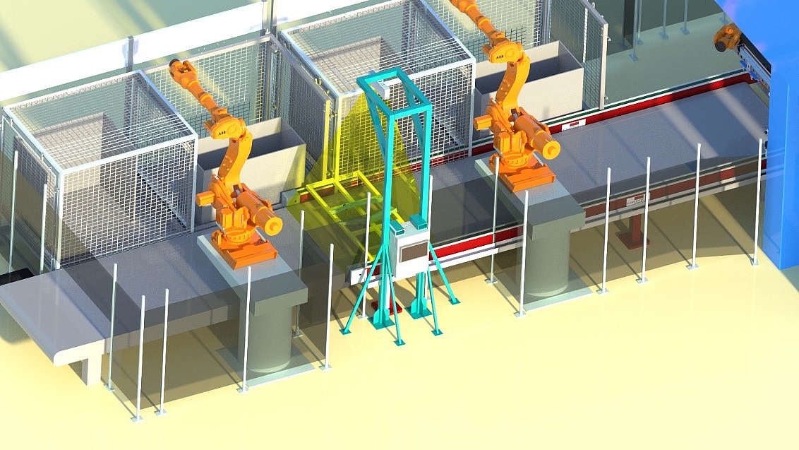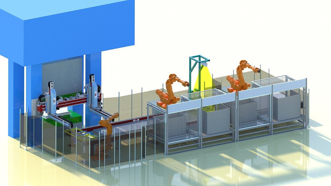 As soon as the position of the component is determined, the stacking robot aligns tooling to the position of the workpiece and simultaneously corrects the position of the moulded components whilst running to the stacking container. Optical position recognition systems are characterized by high flexibility and process reliability.