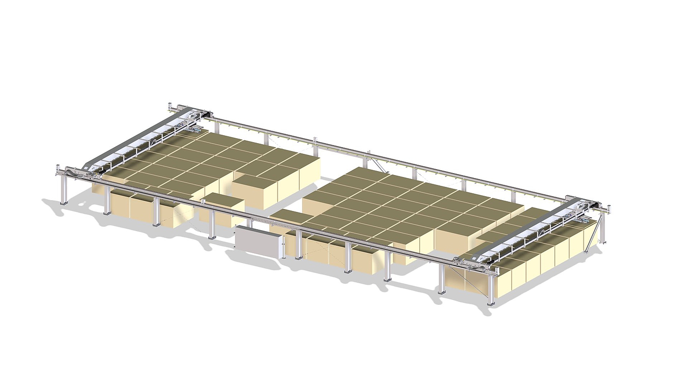On-floor storage systems are used to store plate-shaped workpieces of different materials and sizes. Our on-floor storage system provides the basis for process-optimised feeding for different production machines.