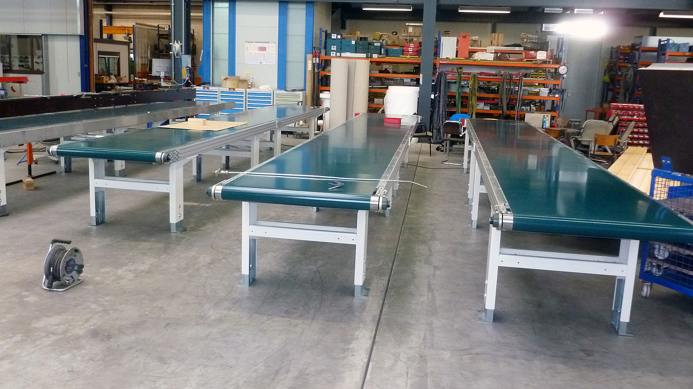 Belt conveyors play an important role in any kind of automated conveyor technology.Due to its versatility and flexibility, such may be used well and efficiently for the transport of small parts as well as larger objects. Transport by belt conveyor is almost noiseless and at high speeds precisely timed and accurate, even when conveying goods with unstable surface contact and even when turning corners!