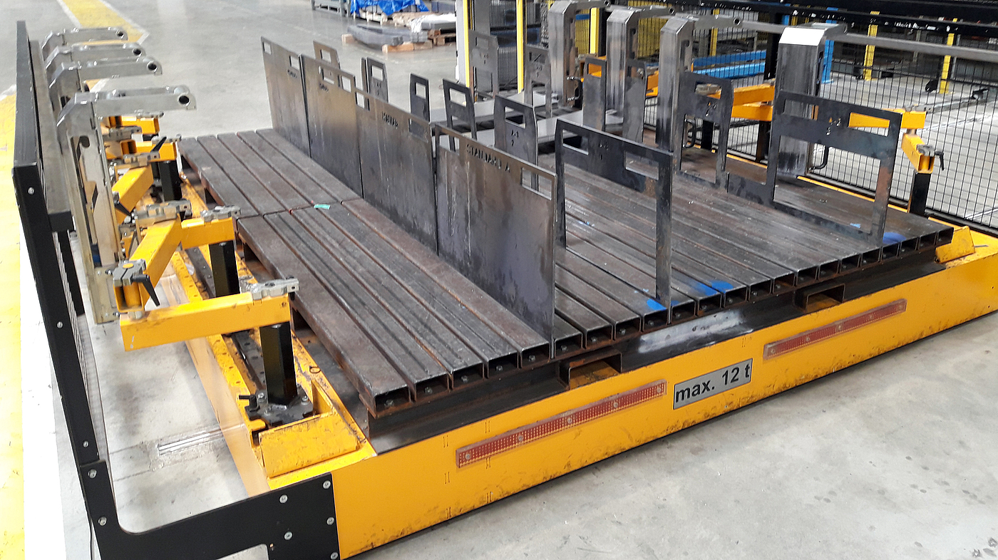Platinenwagen bilden in der Regel das erste Element in einer automatisierten Platinenzuführung. Mittels Gabelstapler, Kran oder automatischen Flurförderfahrzeugen werden die Platinenschnitte als Stapel auf den Platinenwagen positioniert und dem Platinenlader zugeführt. Die Tragkraft und die Abmessungen der Wagen sind frei wählbar. Über den Einsatz von zwei unabhängigen Platinenwagen innerhalb einer Anlage wird ein unterbrechungsfreier Produktionsbetrieb ermöglicht.