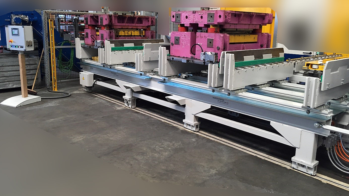 Für den automatischen Werkzeugwechsel an Pressenstraßen sorgen individuelle Maschinen und Anlagen von HORSTKEMPER. Dabei ertüchtigen wir sowohl neue Pressenstraßen als auch bestehende Pressenlinien im Rahmen von Retrofits mit vollautomatischen Werkzeugwechsel-Systemen. Exakt nach den Anforderungen des Kunden. Für nahezu jeden Anwendungsfall stehen im Bereich des Werkzeugwechsels Lösungen zur Verfügung.