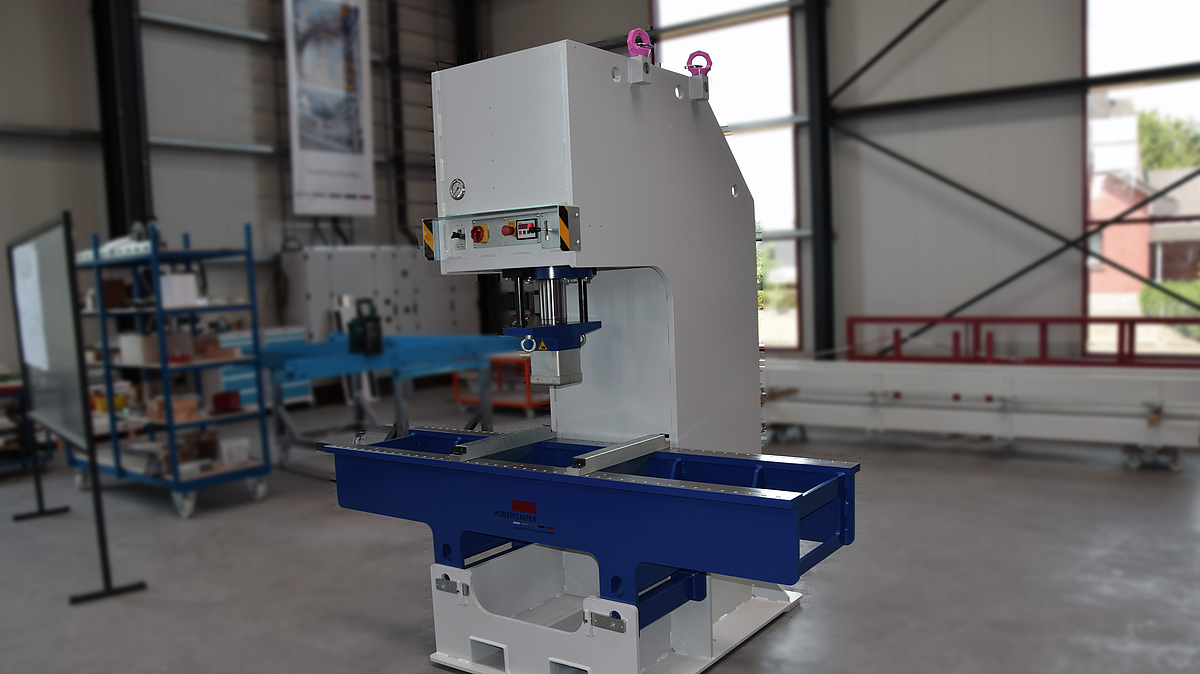 Eine C-Gestell-Presse wird vor allem eingesetzt, wenn es nötig ist, Zugang von drei Seiten zu haben. Die C-Gestell-Presse von HORSTKEMPER Maschinenbau überzeugen durch Leistungsfähigkeit und soliden Grundaufbau. Perfekt geeignet sind die C-Gestell-Presse zum Verformen, Richten und Biegen von diversen Bauteilen. Durch den modularen Aufbau sind Arbeitshöhe und Ausladung flexibel einstellbar. Die geringe Größe, in Kombination mit der robusten Konstruktion, ermöglicht eine kosteneffiziente und schnelle Produktion mit hoher Stabilität.