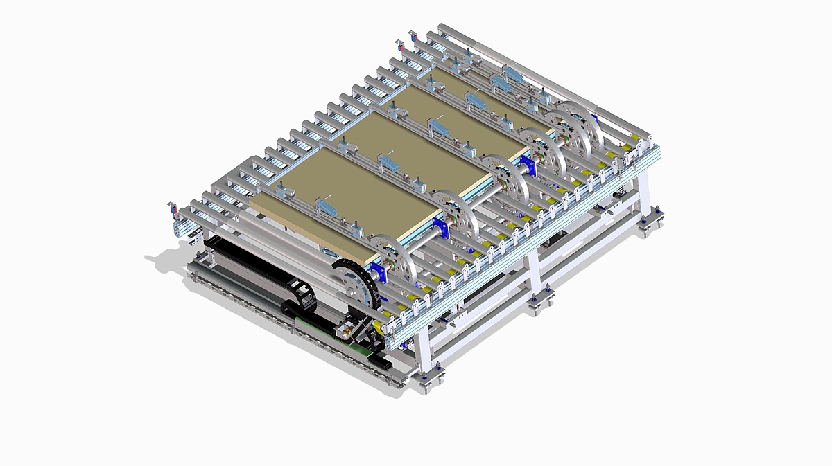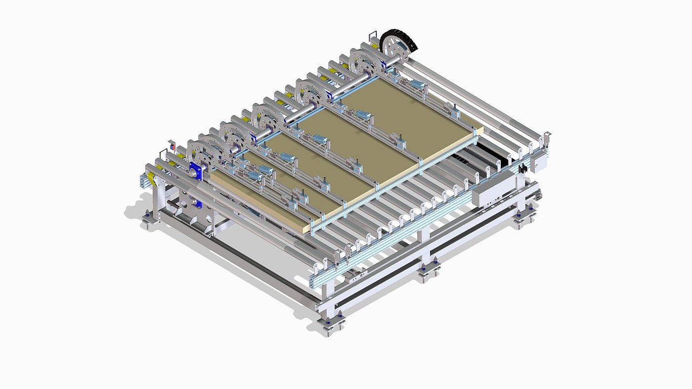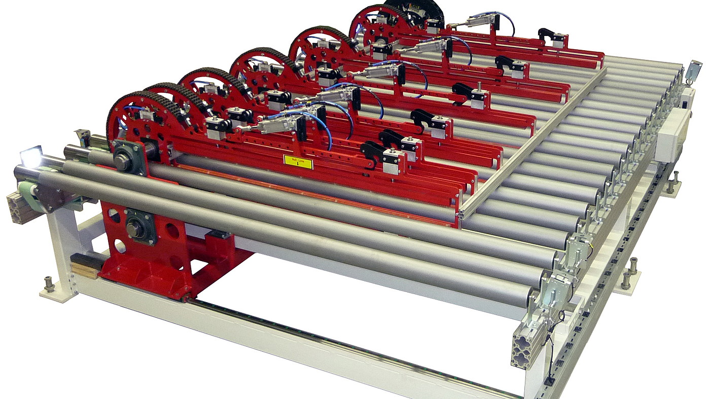 In der Verkettung von Türen-Bearbeitungsmaschinen kommt der Gabelwender zum Einsatz. Die Türen laufen zentrisch über die Transporttechnik ein, werden materialschonend geklemmt, in Längsrichtung um 180° gewendet und laufen für den nachfolgenden Prozess auch zentrisch wieder aus. Über den parallelen Ein- und Auslauf wird die geforderte Leistung sichergestellt.