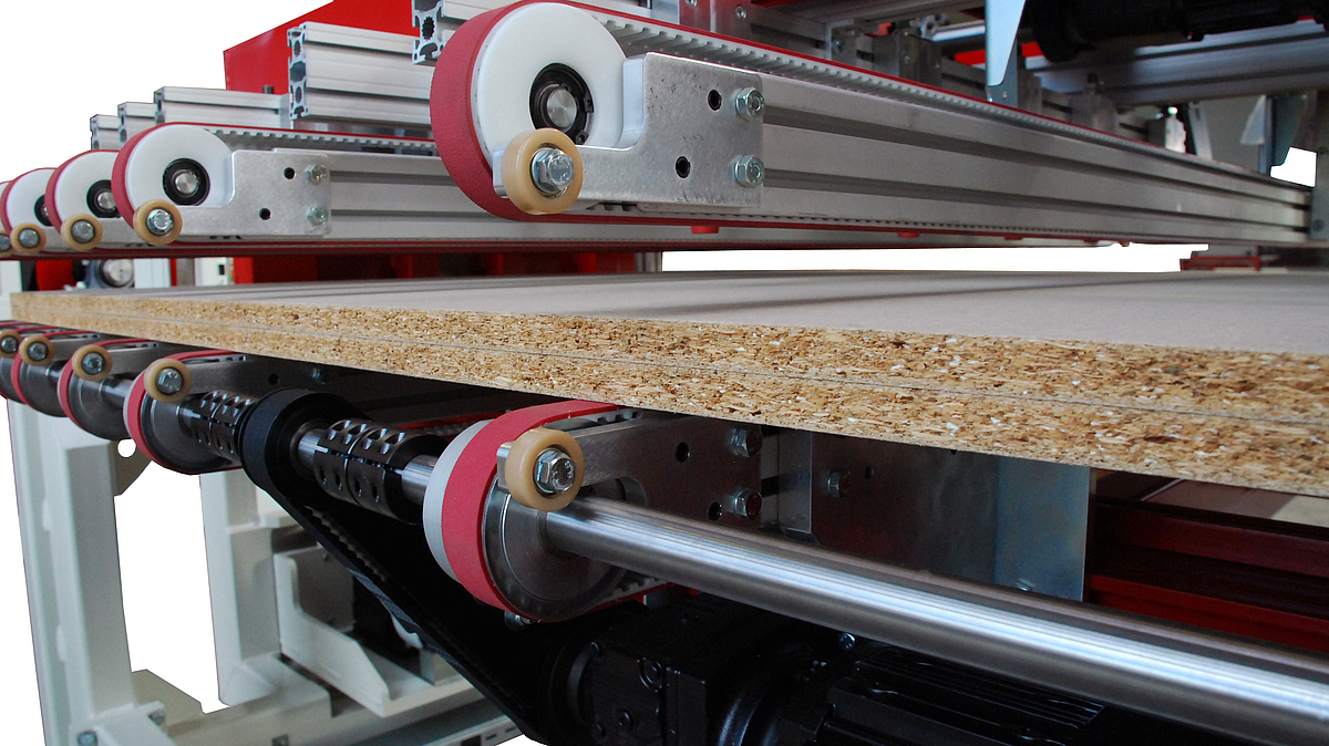 Der Plattenwender ist eine optimale Maschinenkomponente, um im laufenden Prozess einzelne Werkstücke um 180° zu wenden. Durch den Aufbau des Plattenwenders besteht in einer Anlagenverkettung die Option, Werkstücke ohne zu Wenden oder sogar im Wechsel durch zu befördern. Typische Anwendungsbereiche sind wechselseitige Bearbeitungen und Oberflächenkontrollen.