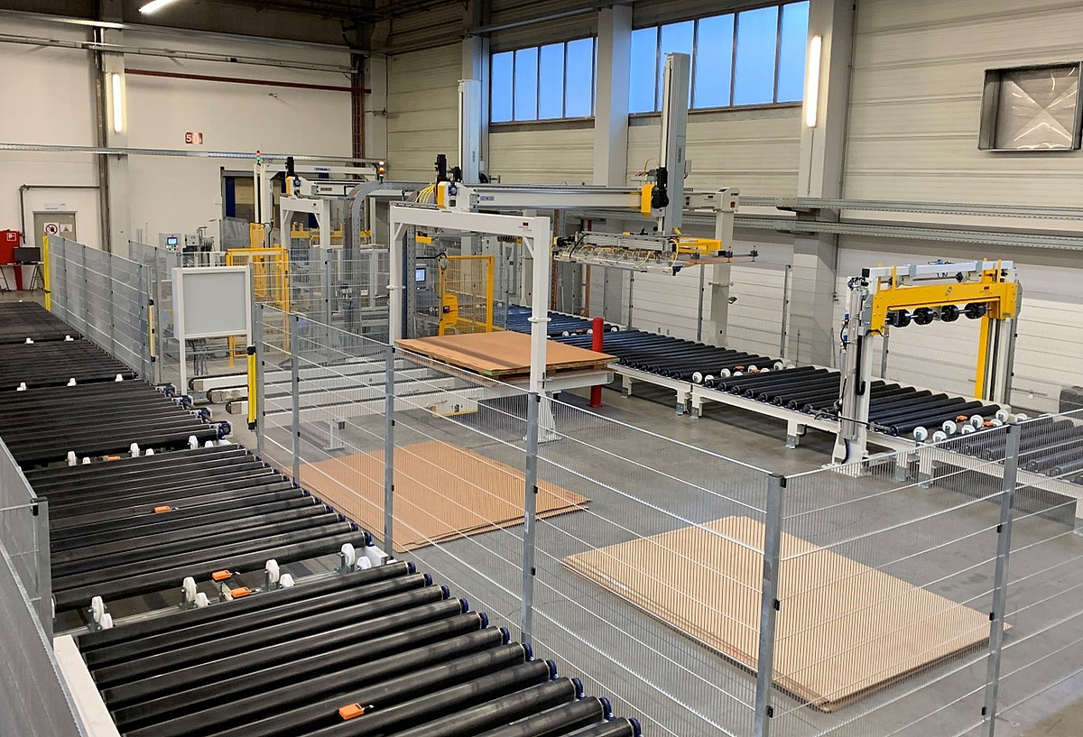 Die österreichische Unternehmensgruppe EGGER hat am Standort in Brilon hinter einer Oberflächenveredelungsanlage für Holzwerkstoff-Platten abermals auf die Erfahrung des Hauses HORSTKEMPER gesetzt und eine Verpackungsanlage für Plattenstapel geordert.