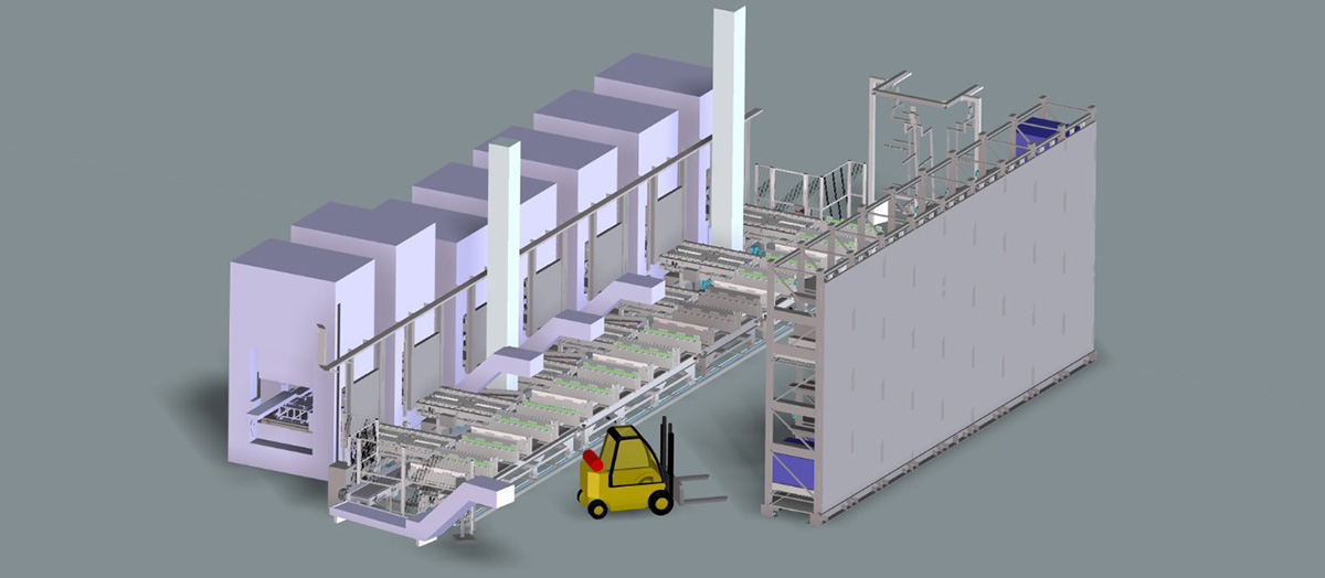 Rietberg - Horstkemper Maschinenbau liefert für einen Tier 1 – Zulieferer der Automobilindustrie einen Seitenstapler an einer bestehenden Platinen-Schneidanlage und erhöht somit die Flexibilität der Anlage deutlich.