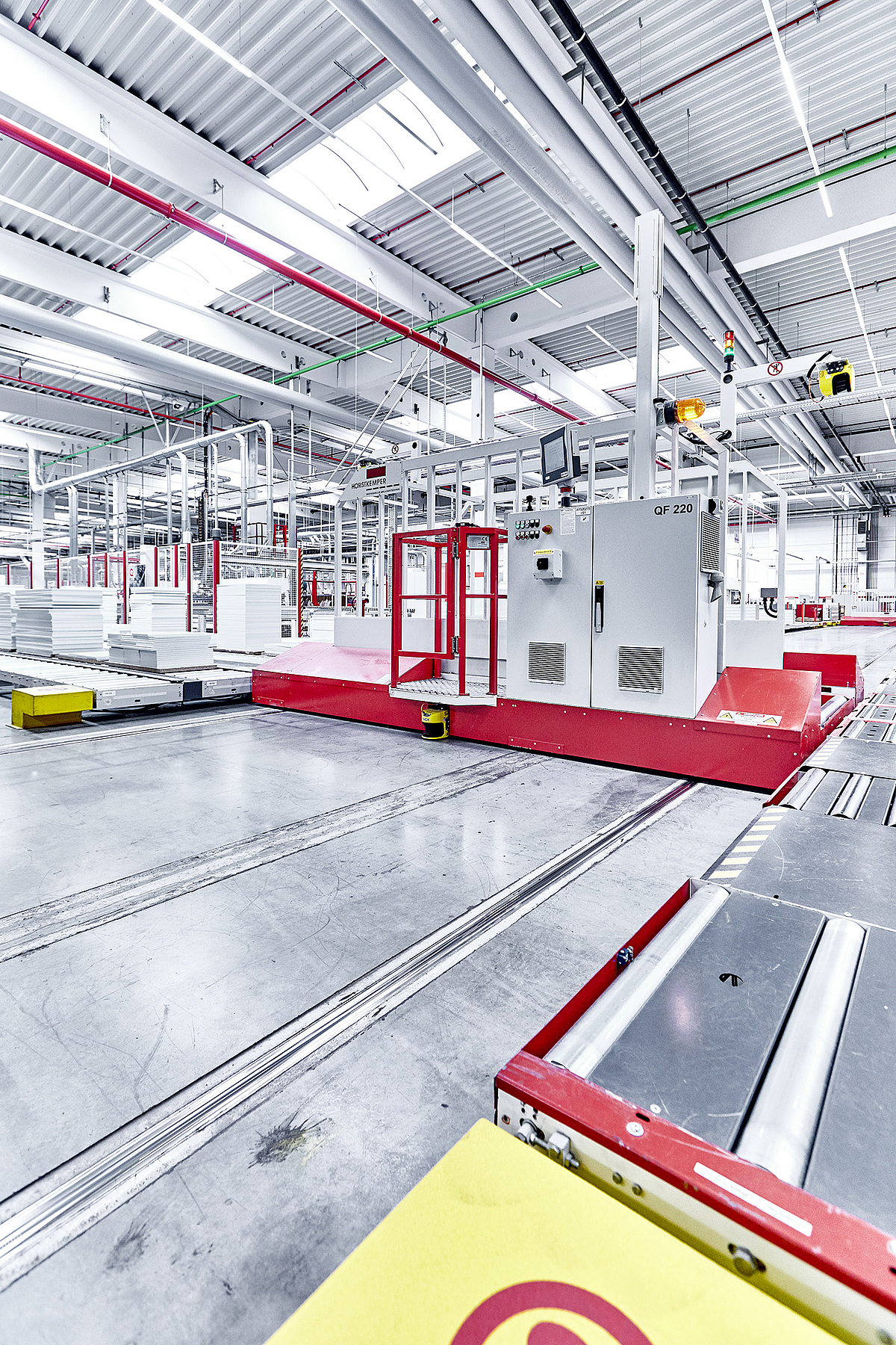 Die unterschiedlichen Querförderwagen können mit bis zu 85 m/min Geschwindigkeit verfahren, ohne den Personen- oder Staplerverkehr zu gefährden.