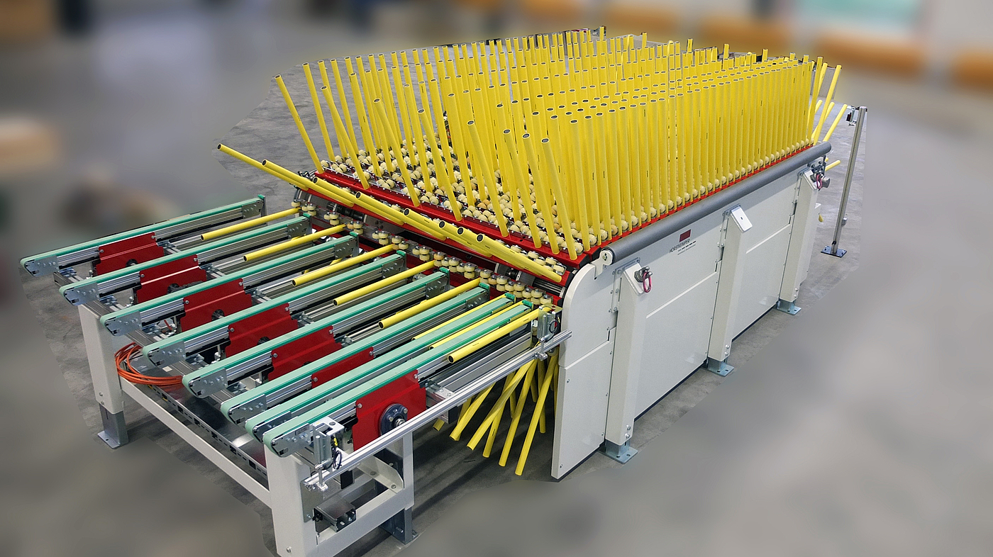 Igelpuffer zum Transportieren/Speichern von plattenförmigen bzw. rechtwinkligen Werkstücken. Igelpuffer dienen als Transporteinrichtung oder als Puffer- und Lagerstation von plattenförmigen bzw. rechtwinkligen Werkstücken. Um Platten während oder nach der Bearbeitung platzsparend zu lagern, zu puffern oder zu transportieren, werden diese aus Förderlinien (z. B. Rollenförderer oder Riemenförderer) ausgehoben und in einen sogenannten Igelpuffer senkrecht hintereinander aufgestellt.