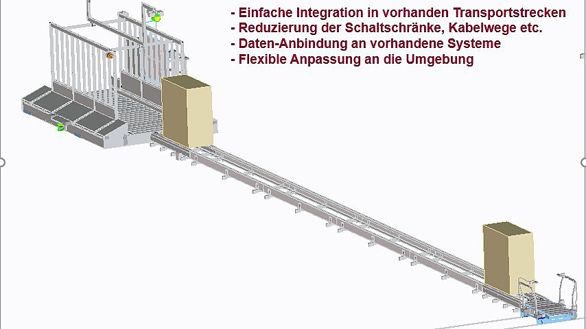 Unser LineMover ist ein schienengebundenes Shuttle-System, mit der Fähigkeit, mittlere Lasten über festgelegte Strecken zu fördern. Der gesamte Fahrweg dient als schwimmende Pufferstrecke. Durch seine integrierte Intelligenz ist der LineMover in der Lage, alle Systeme und den Status der Strecke zu überwachen. Die Schnittstellen der angrenzenden Transporttechnik steuert der LineMover über WLAN.