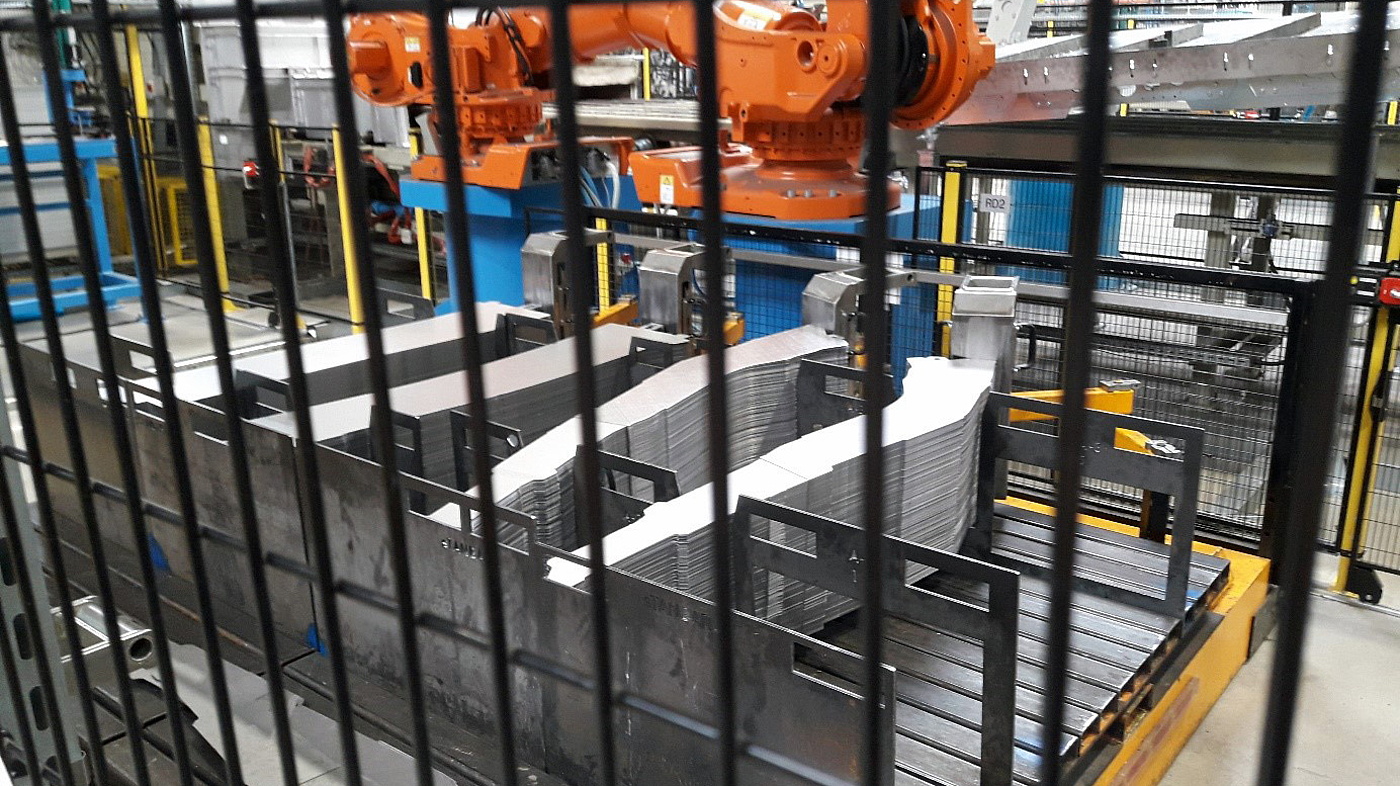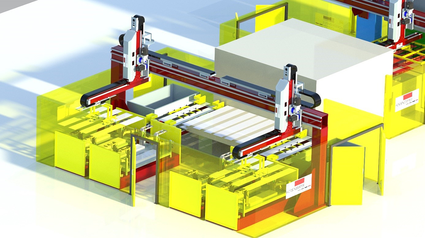 Für den Entstapelprozess in der Warmumformung | Presshärten kommen in der Regel Entstapelroboter oder Entstapelfeeder zum Einsatz. Während bei vielen Anlagen Standard 6-Achs-Roboter von uns eingesetzt und integriert werden, gibt es insbesondere in der Mehrteilfertigung die Anforderung von größeren Reichweiten des Entstaplers. Für diese Anlagen setzen wir unsere hochdynamischen Entstapelfeedersysteme mit bis zu vier Fahrachsen ein. Diese ermöglichen, neben einer frei konfigurierbaren Hublänge mit großer Reichweite in den einzelnen Linearachsen, auch eine hohe Verfahrgeschwindigkeit, sowie die Möglichkeit des Orientierens der Platinen.