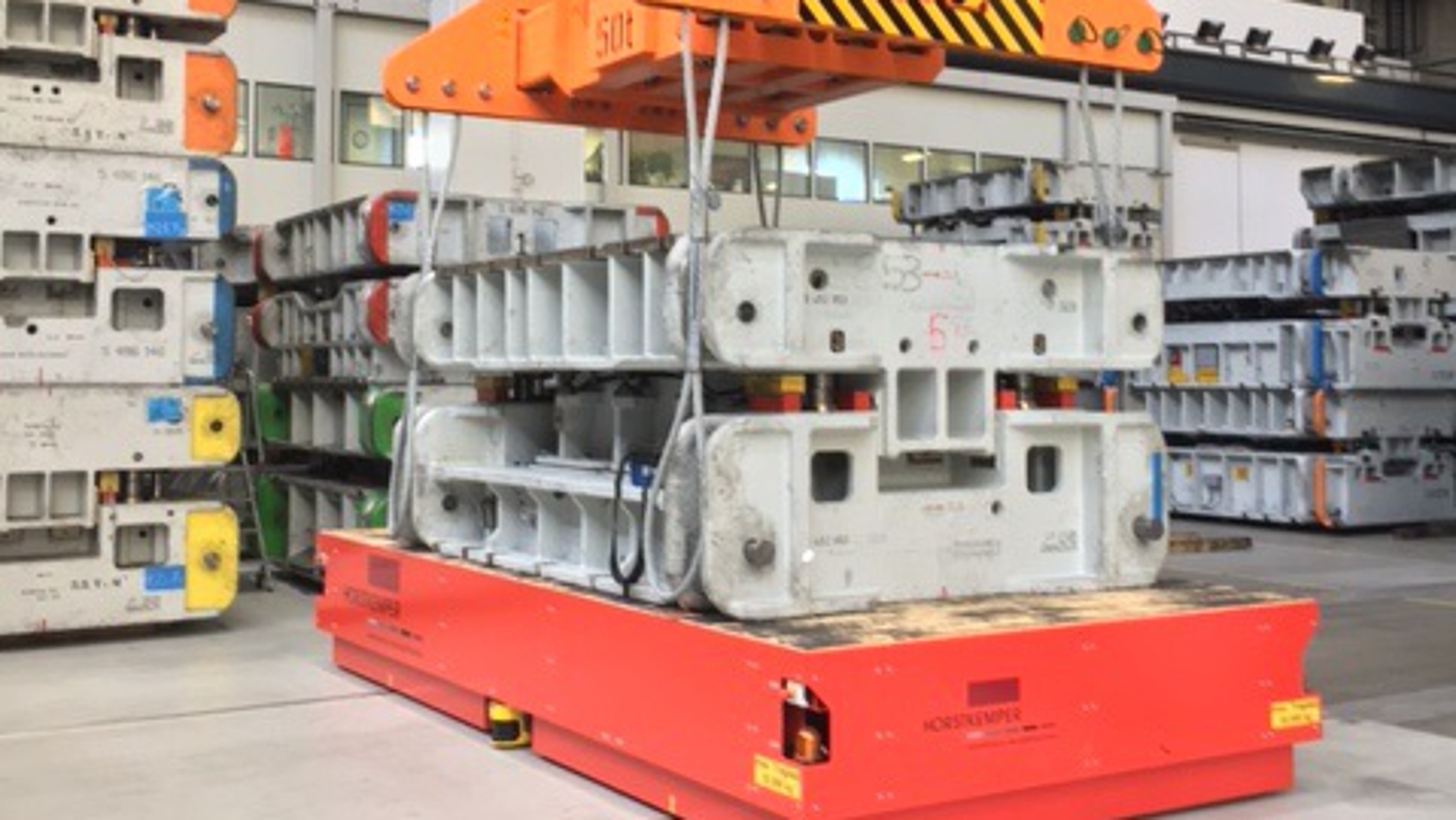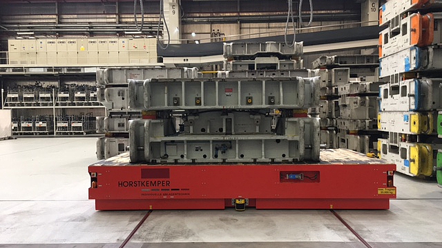 Für den innerbetrieblichen Transport von Presswerkzeugen vertrauen viele Kunden auf die robusten Werkzeugfahrwagen von HORSTKEMPER. Die Fahrwagen, auch FTS oder AGVs genannt, sind dabei meistens schienengeführt und mit einem Batteriepaket angetrieben. Oder sie erhalten eine induktive Stromversorgung. Traglasten bis 63 to. sind bei den Werkzeugfahrwagen ebenso Standard wie die entsprechende Sicherheitsausstattung mit Scannern oder Bumpern.