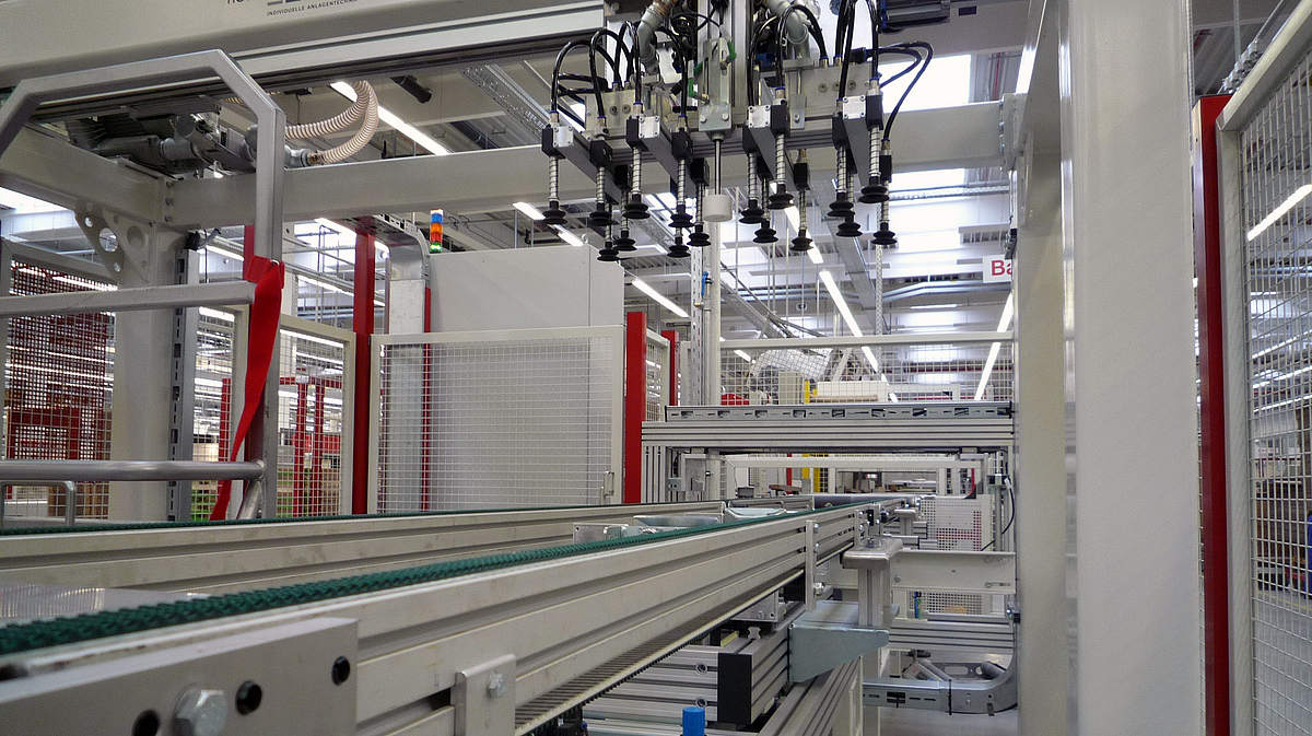 Riemenförderer in den unterschiedlichsten Ausführungen zeichnen sich durch eine hohe Wartungsfreundlichkeit aus. Unsere einfachen und flexiblen Unterbauten lassen sich jederzeit unterschiedlichsten Produkten zuordnen. Die einseitige Unterbauaufhängung lässt einen Riemenwechsel in Minutenschnelle zu, was sich mehr als positiv auf Ihre Anlagenverfügbarkeit auswirkt. Riemenbeschichtungen jeglicher Art, von Flachriemen mit Riefen bis zur Nocke, bringen Ihr Produkt schonend, schnell und auf den Punkt ans Ziel. Mittels Vakuum können wir sogar Ihre Teile auf unseren Hybrid-Riemenförderer fest positioniert fördern.